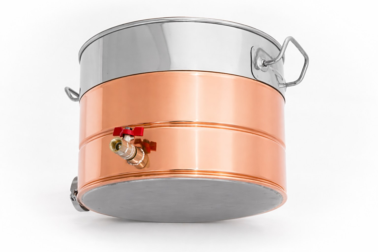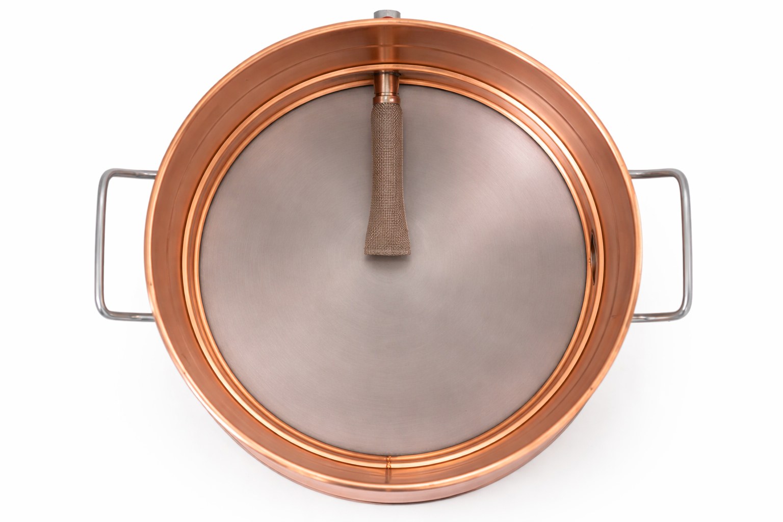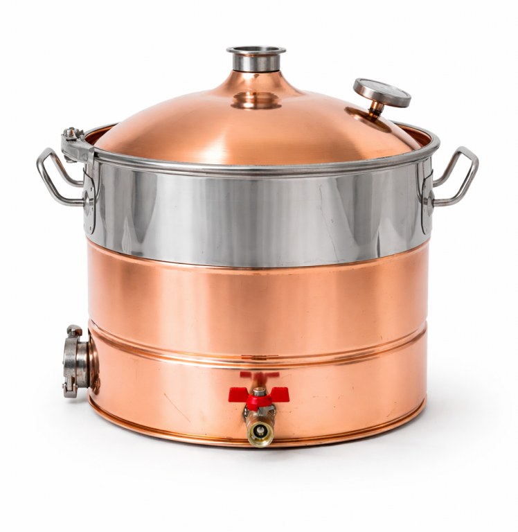 -Благодаря хомуту, диаметр горловины равен диаметру самой кастрюли, крышка быстро снимается и перегонный куб легко моется после использования.