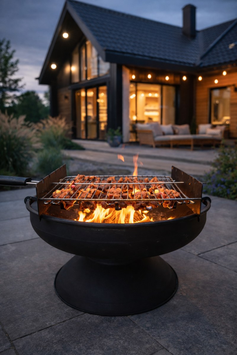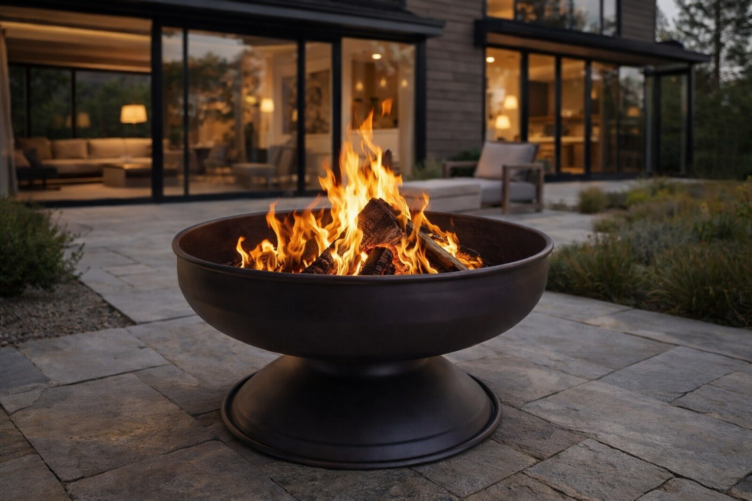 Костровая чаша не останется без внимания не только за счет разведенного в ней огня, но также благодаря своей необычной форме, придающей ей выразительность и эффектность.