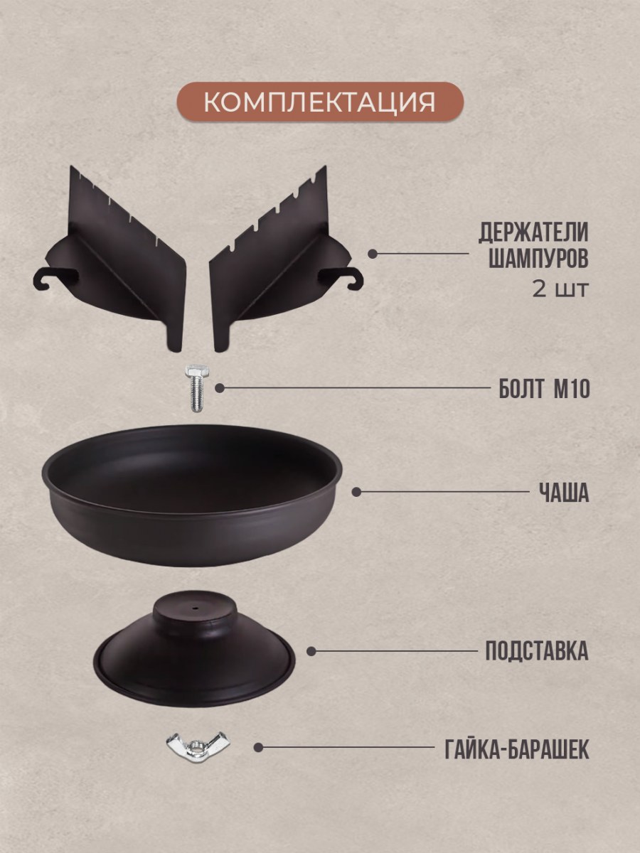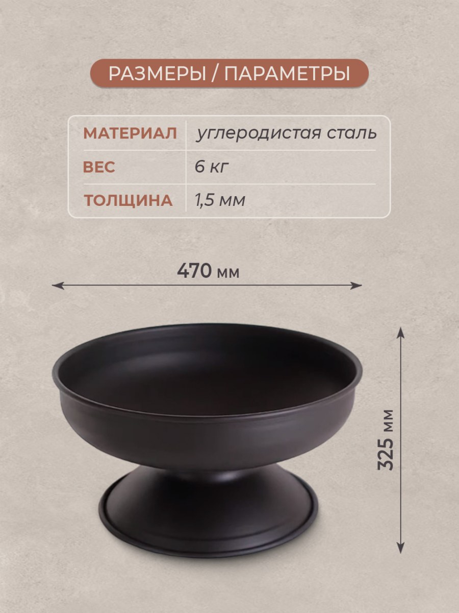 На костровой чаше можно готовить вкусные и разнообразные блюда, для этого мы комплектуем ее съемным держателем для шампуров и решетки гриль. Чтобы костровая чаша не только согревала и вдохновляла, но и радовала приготовленной на ней едой.