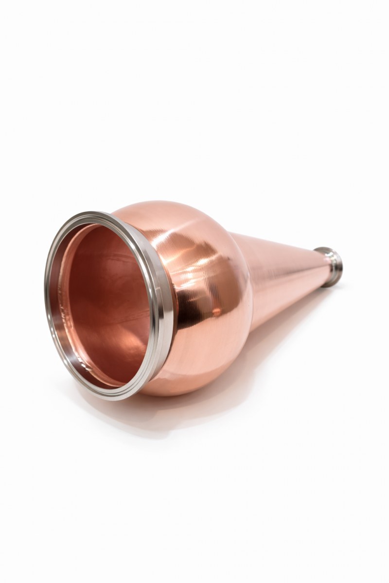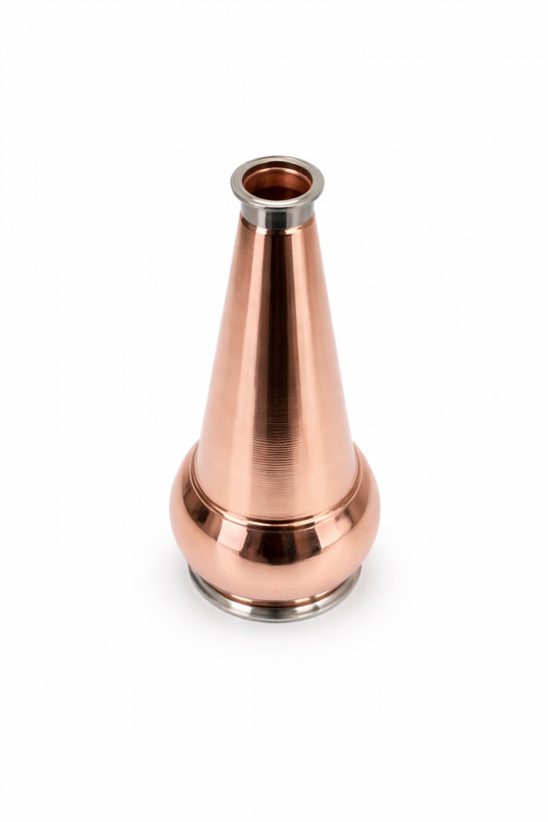 Медь абсорбирует оксид серы, выделяемой в процессе брожения, тем самым, исключает присутствие нежелательного запаха и неприятного привкуса в конечном продукте, за счет своей конусообразной формы, работает как воздушный дефлегматор.