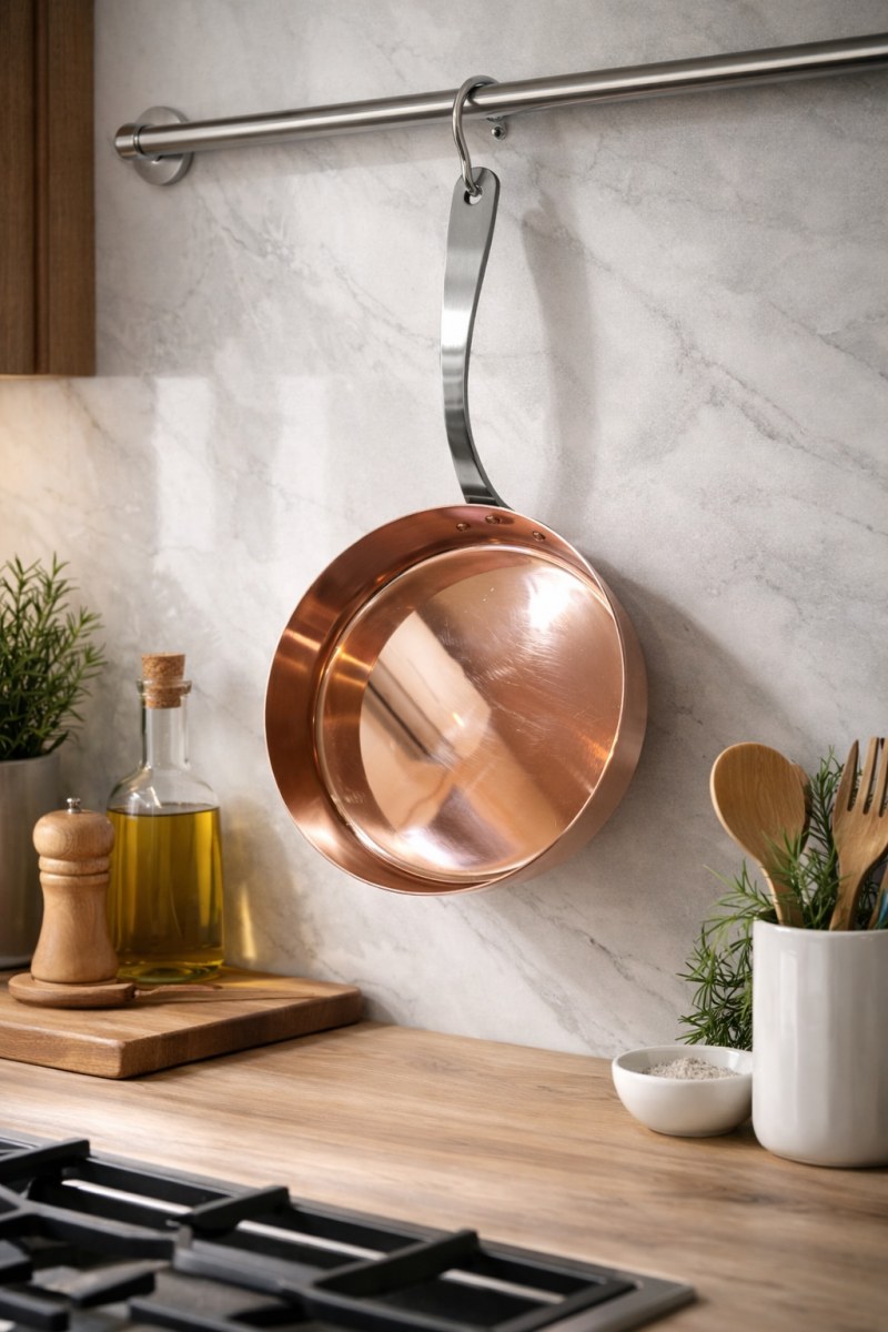 - Эстетов- сковорода с благородным медным блеском станет стильным акцентом в интерьере кухни.